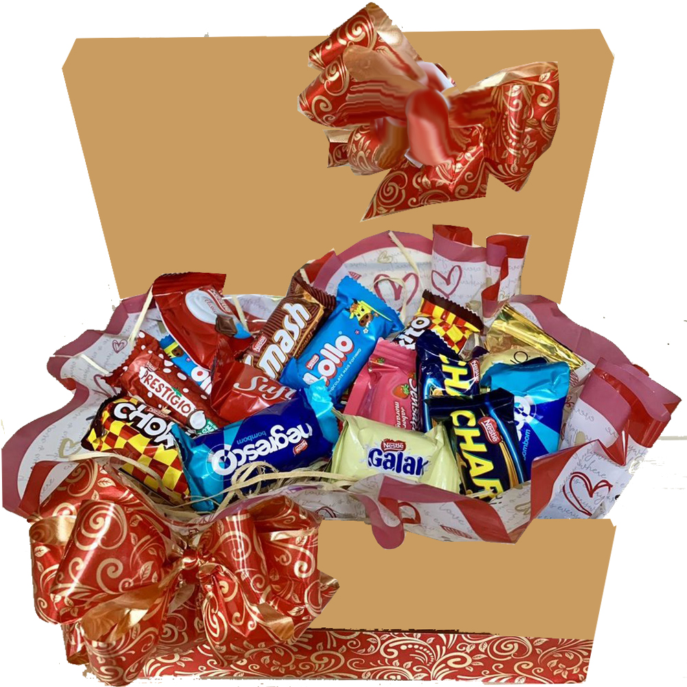 Cesta decorada contendo14 bombons sortidos